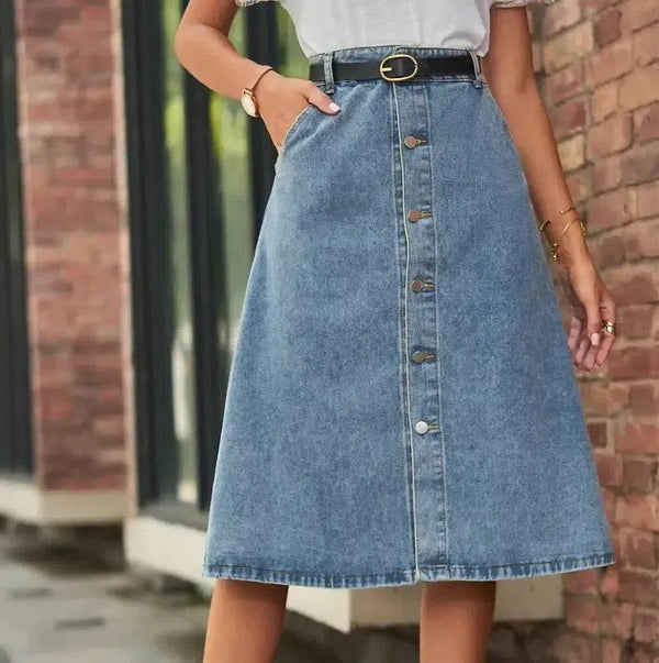 Produktbeskrivelse: All-Matching Slimming Washed Denim Breasted Skirt for Women