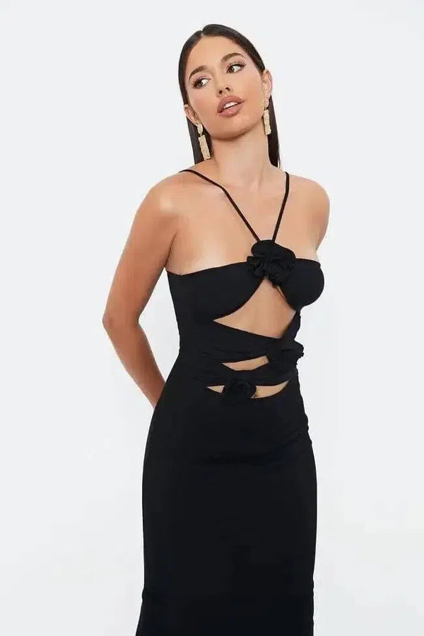 Flower Hollow Smaltsittende kjole med hul hals og midtlengde
