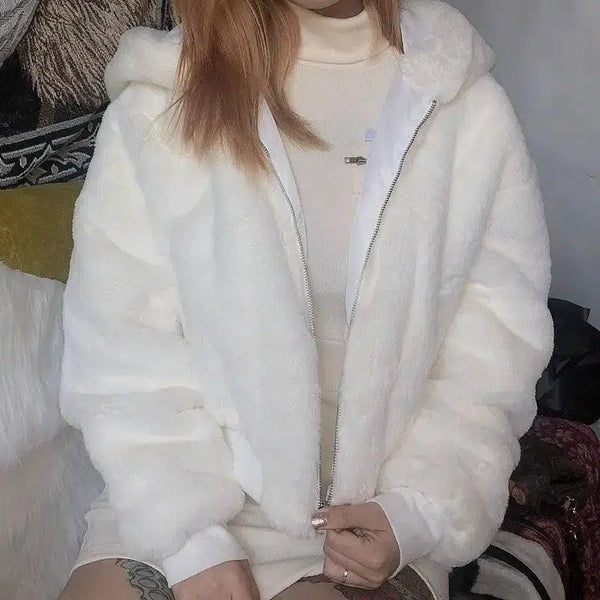 Produktbeskrivelse: Uformell kort plysjjakke med hette for kvinner