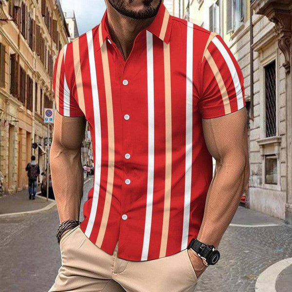 Uformell stripete kortermet skjorte sommerjakke Olivengrønn / 3XL