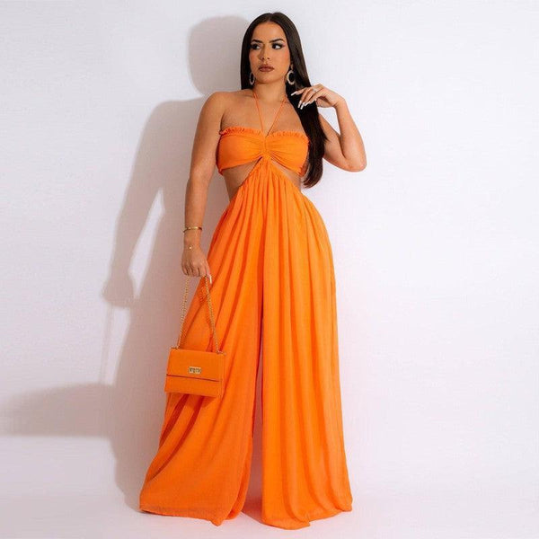 Jumpsuit i chiffong med bar rygg og vidde i bena European