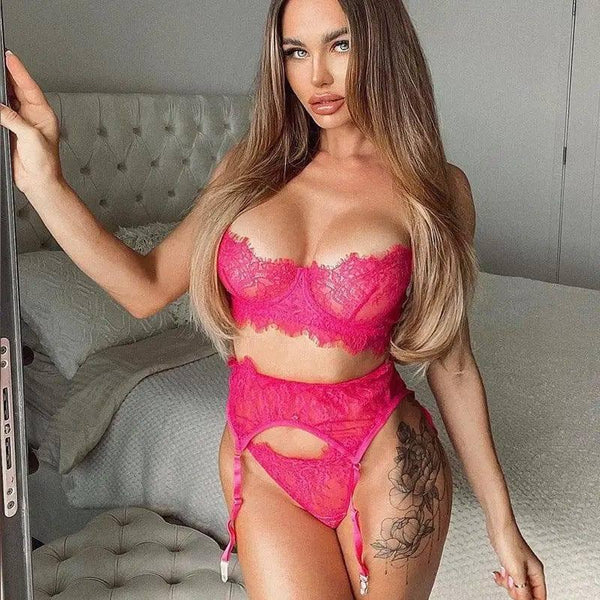 Produktbeskrivelse: Brodert blonder perle slyngeundertøy for kvinner tre