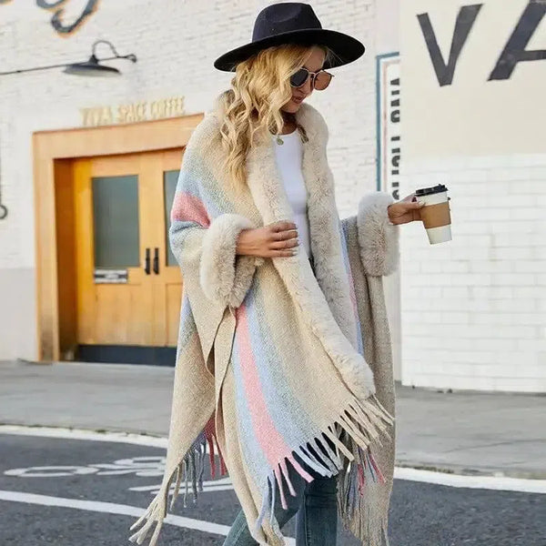 Produktbeskrivelse: Hettekappe med hette for kvinner høst og vinter stripete