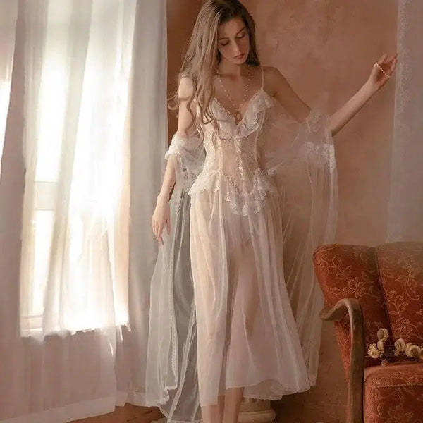 Chemise for kvinner Hvit polyester blonder stretch chemise