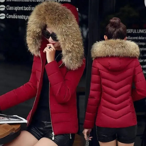 - Hals/skulderstil: Høy krage med pelskantet hette