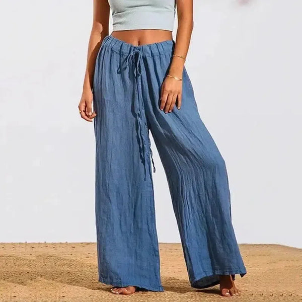 Løse, myke bomullsbukser med løpesnor for kvinner