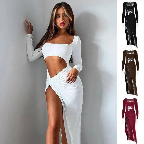 Dameklær Langermet kjole mote hul U-hals delt kjole fest bryllup