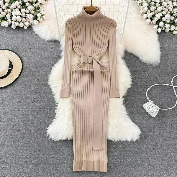 Elastisk, tettsittende, strikket kjole med rumpe