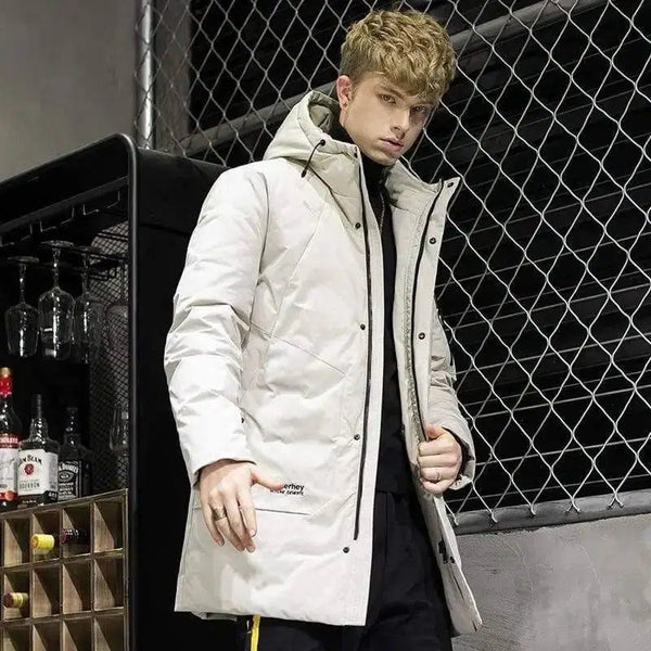 Varm, tykk dunjakke med hette