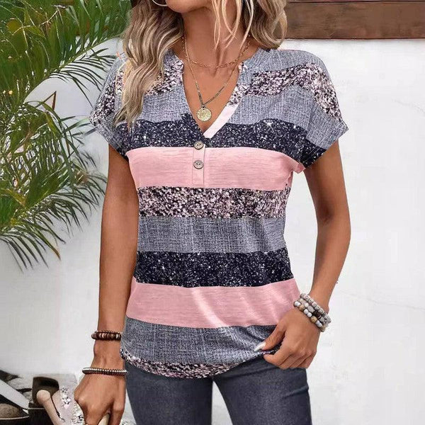 Europeisk og amerikansk sommer, kortermet stripete V-hals 3D