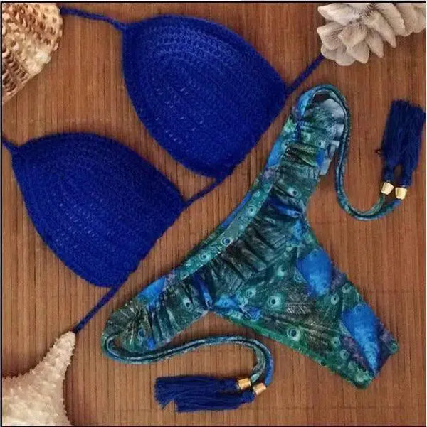 Europeisk og amerikansk strikket bikini med blonder og blomstertrykk Split