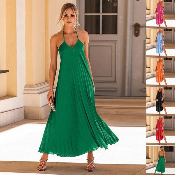 Mote A-linje plissert lang kjole med seler sommer fritid
