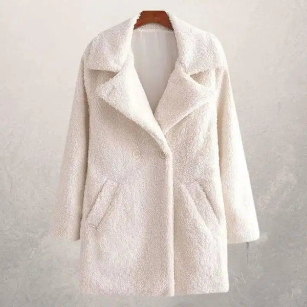 Mote enkel ren farge ullfrakk med revers for kvinner