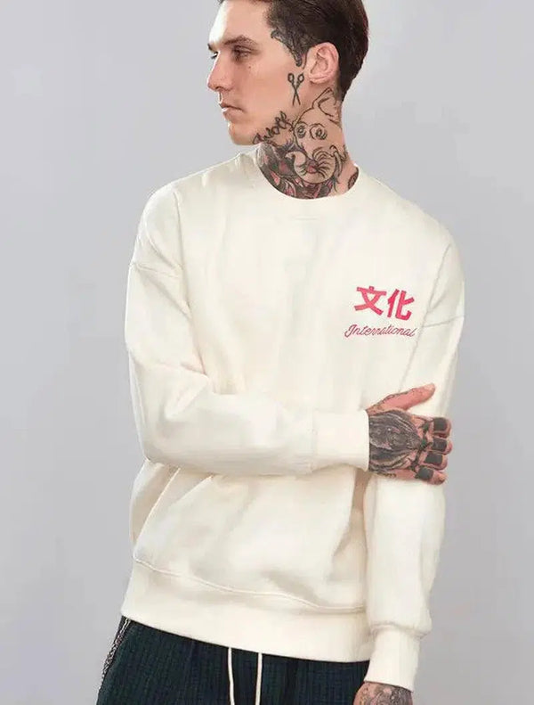 Genser med rund hals og trykk av kinesiske tegn