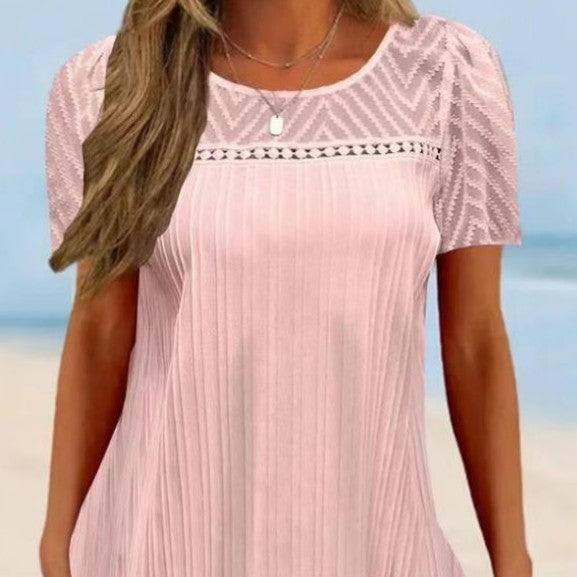 Pullover Rundhalset Lace Patchwork Kortermet T-skjorte