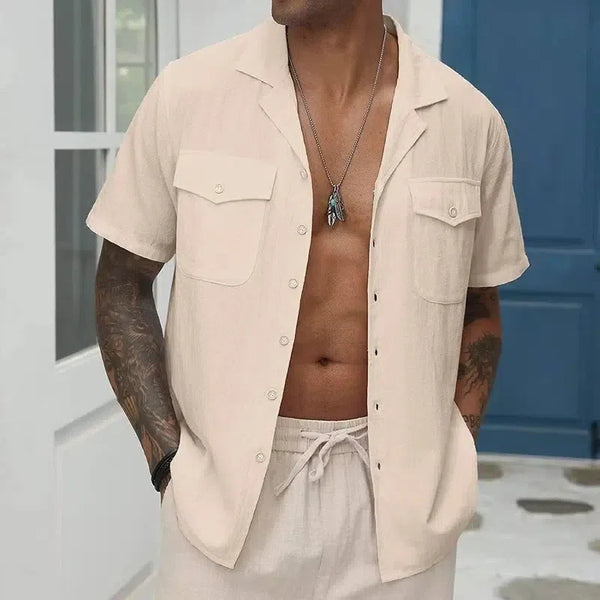 Ledig, løs, ensfarget lommeskjorte for menn
