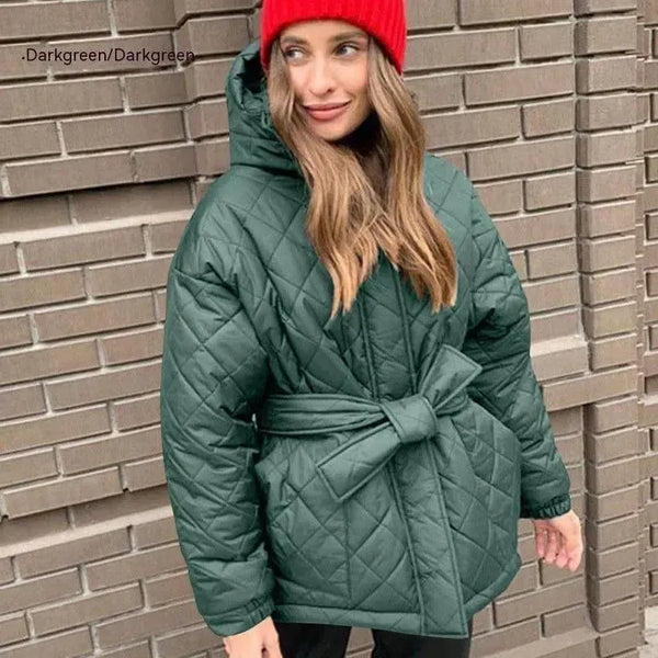 Bomullsjakke med hette Slim-fit snøring og revers med lange ermer