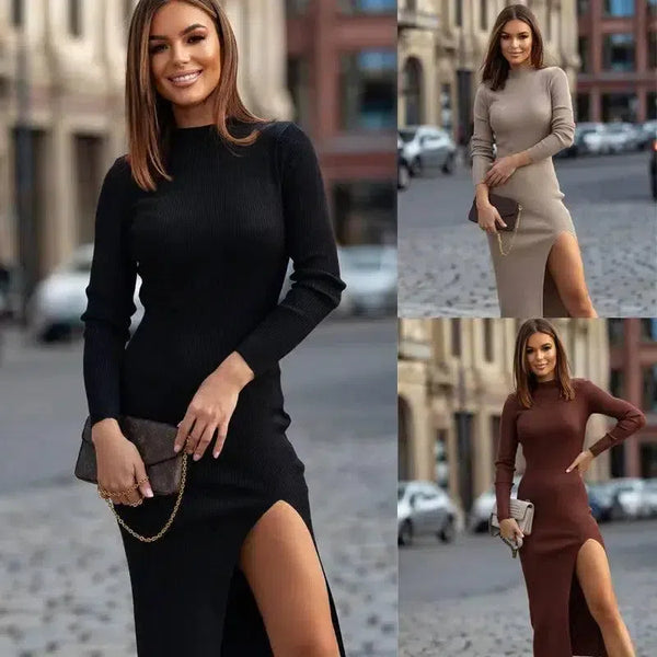 Høst- og vinterkjoler med rund hals Smal ensfarget