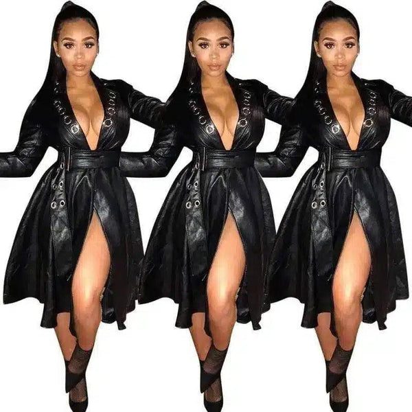 Trench-kjole i imitert skinn med belte for kvinner