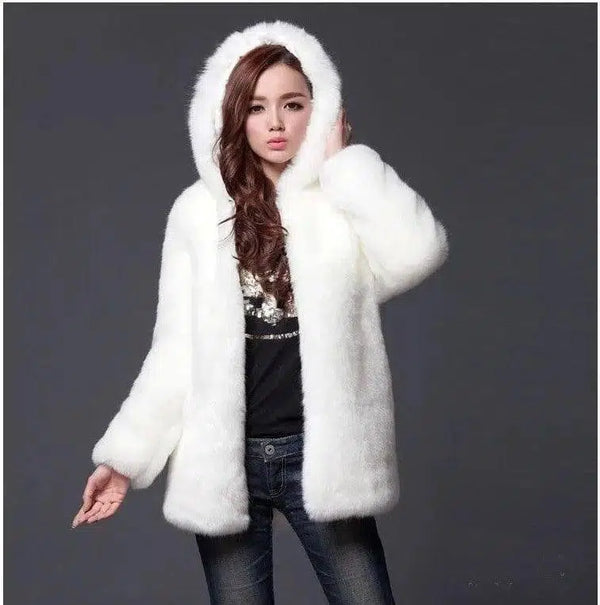 Imitert pels hettejakke for kvinner i mellomlengde