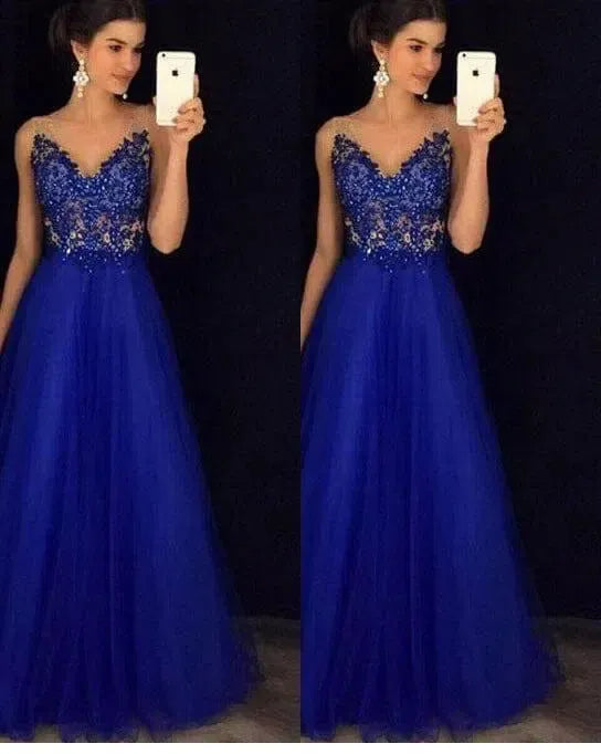 Kjole Backless Beaded Ball Elegant lang kjole blå chiffong
