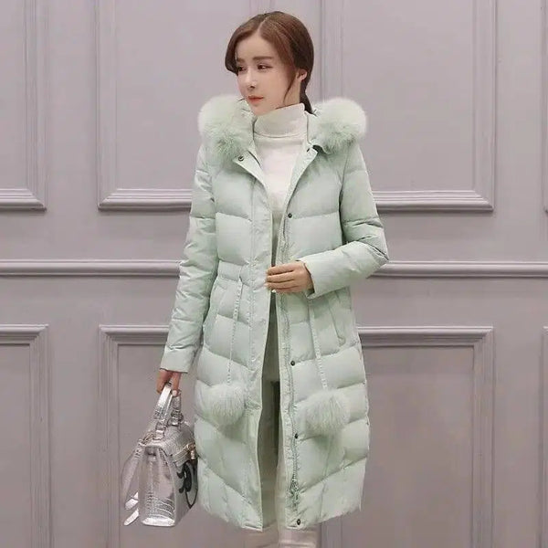 Koreansk bomullsvattert overfrakk i dun for kvinner over kneet