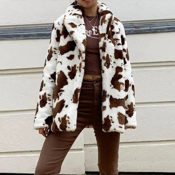 - Materiale: Luksuriøs kaninpels med et karakteristisk kumønster