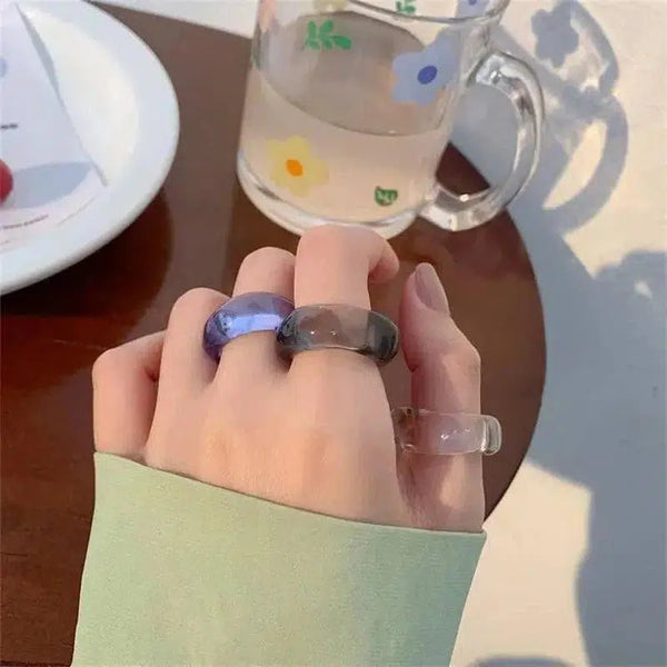 3stk koreansk geometrisk harpiksring ins net rød ny akryl