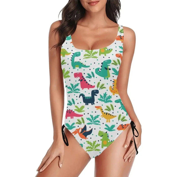 99diy Badedrakt med trykk på siden og snøring i ett stykke