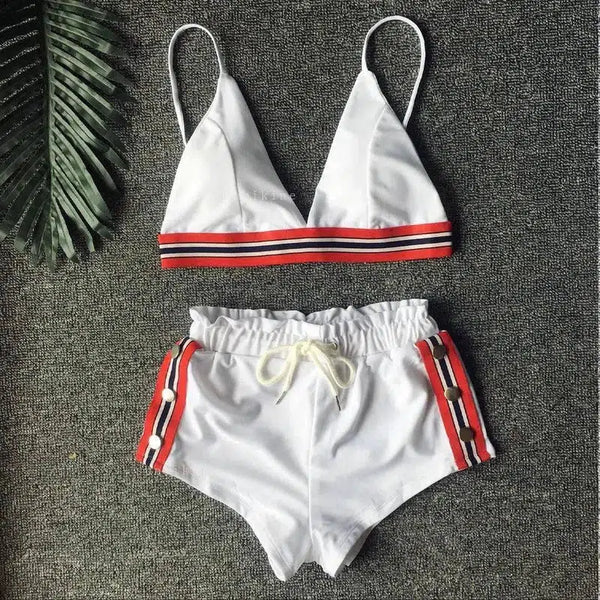 Produktbeskrivelse: Bikini tredelt ensfarget badedrakt med splitt