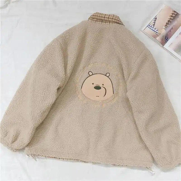 Brodert lammepelsjakke med bjørnebroderi