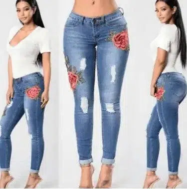Produktbeskrivelse: Jeansbukser med stretchbroderi