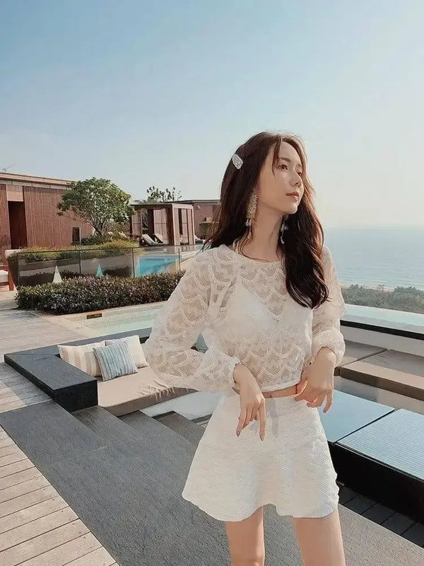 Produktbeskrivelse: Badedrakt i tre deler med blonder for kvinner