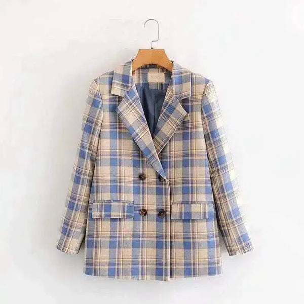Rutete dobbeltspent blazer til dame