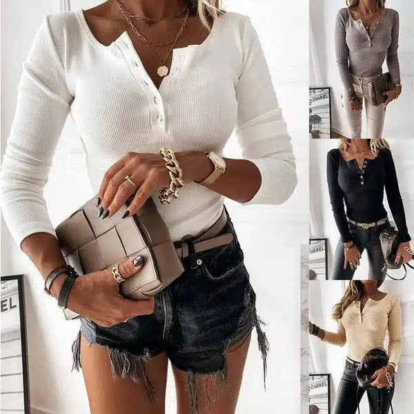 Strikket topp med knapper og V-hals for kvinner