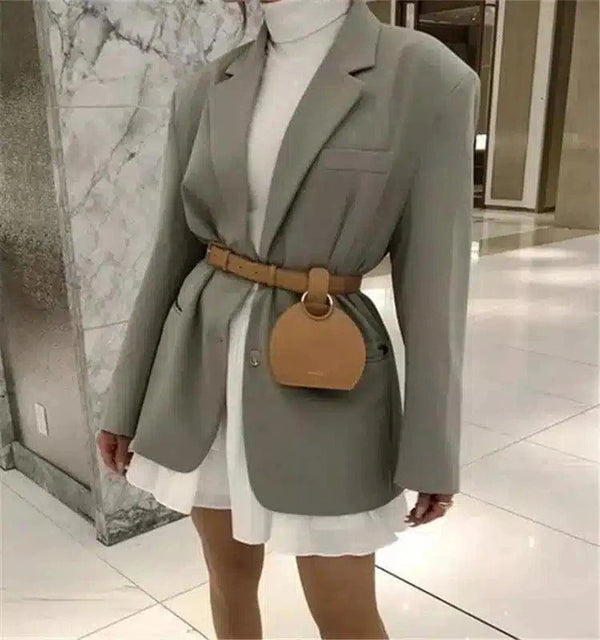 - Snitt: Strukturert med belte i midjen for en definert silhuett