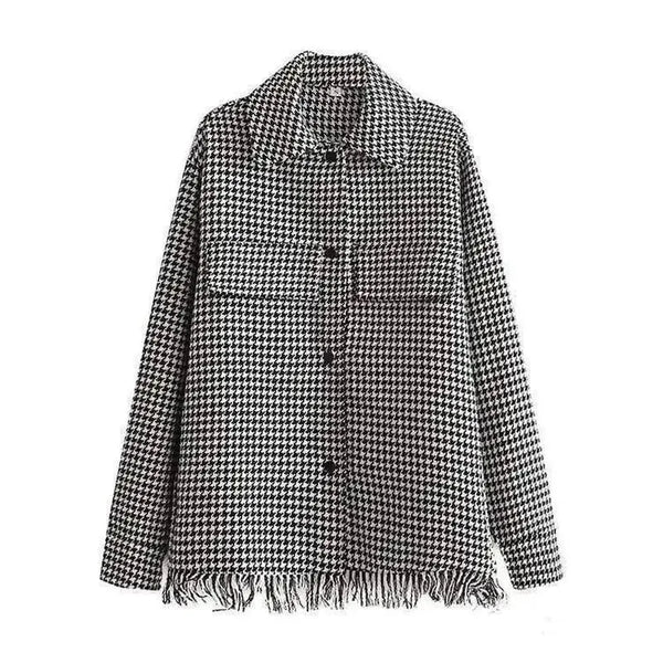 - Designdetalj: Houndstooth-mønster med frynser forneden