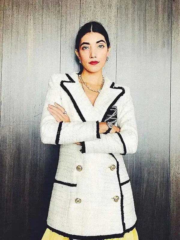 - Lukking: Dobbeltradet front med gullfargede knapper