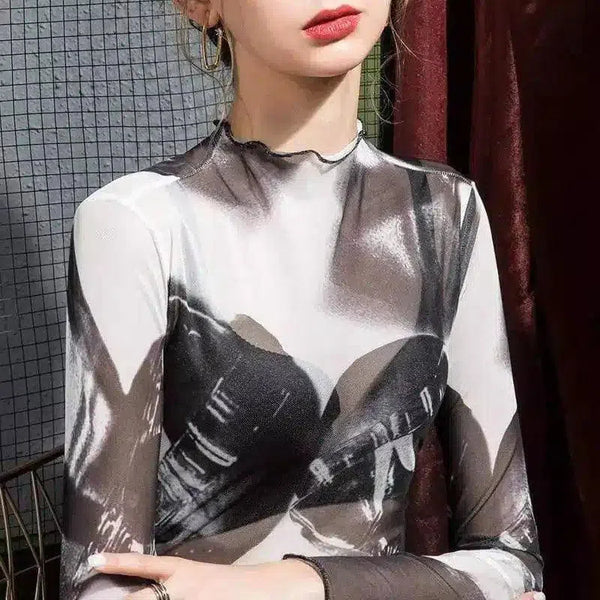 Dristige elementer: Det dristige abstrakte mønsteret kombinert med det gjennomsiktige materialet skaper et edgy, men stilfullt element, som gjør denne toppen allsidig både på dag- og kveldstid.