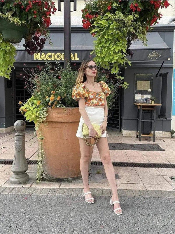 - Type plagg Type plagg: Blomstret topp med puffermer