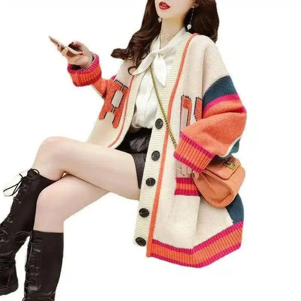 Overdimensjonert strikkecardigan med striper for dame