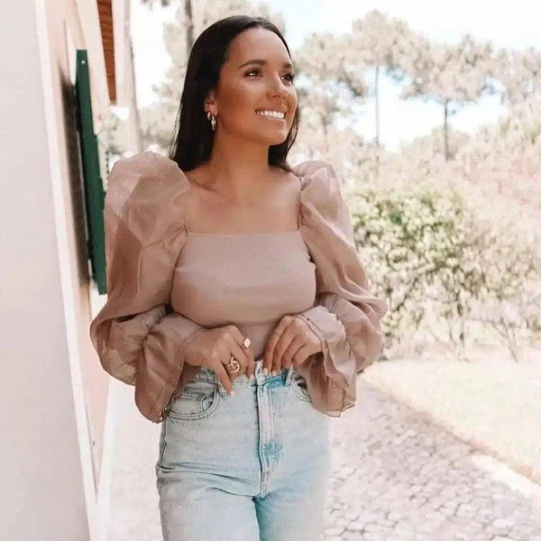 - Type plagg Ermelengde: Lange ermer med voluminøs puffdesign