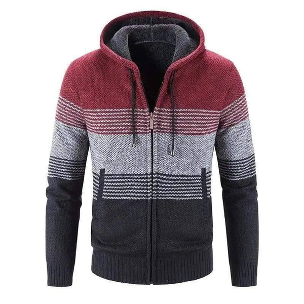 Stripejakke med hette for menn Stripejakke for menn Tykk glidelås ull