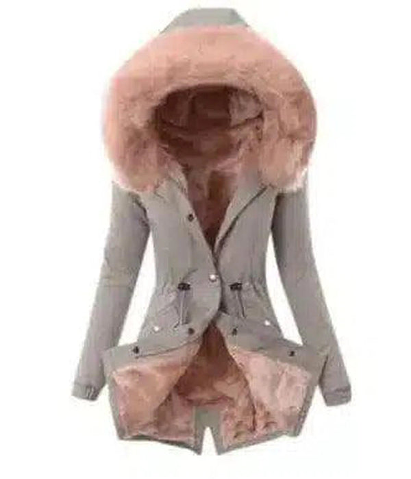 - Type plagg Hals/skulderform: Design med hette og kant i fuskepels