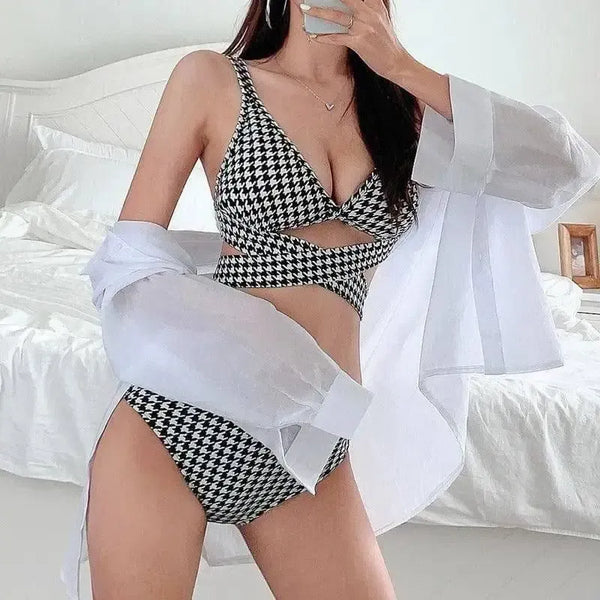 Houndstooth-badedrakt med kryssbånd Bikini