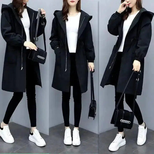 - SEO-relevante søkeord: lang frakk, hettejakke, yttertøy til kvinner, casual chic, moderne glidelås, elegant silhuett, allsidig mote, lettstelt stoff.