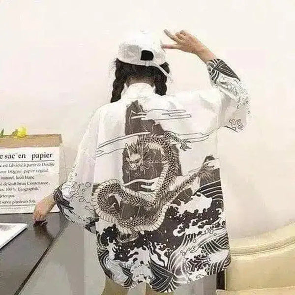 Tradisjonell kimono med dragetrykk