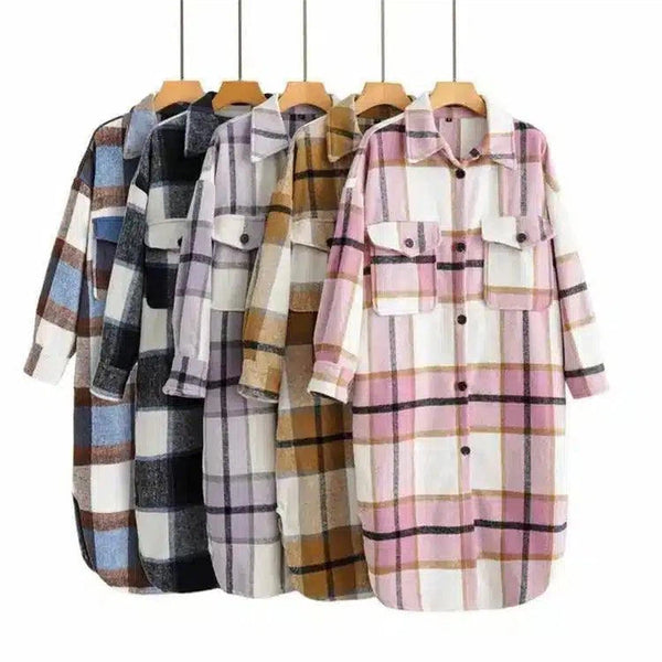 Kontrasterende rutete casual mote enkel lang ullkåpe