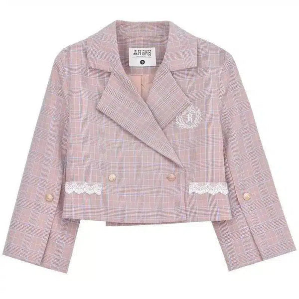 - Designdetaljer: Dobbeltspent lukking, blonder på lommene, rutete mønster