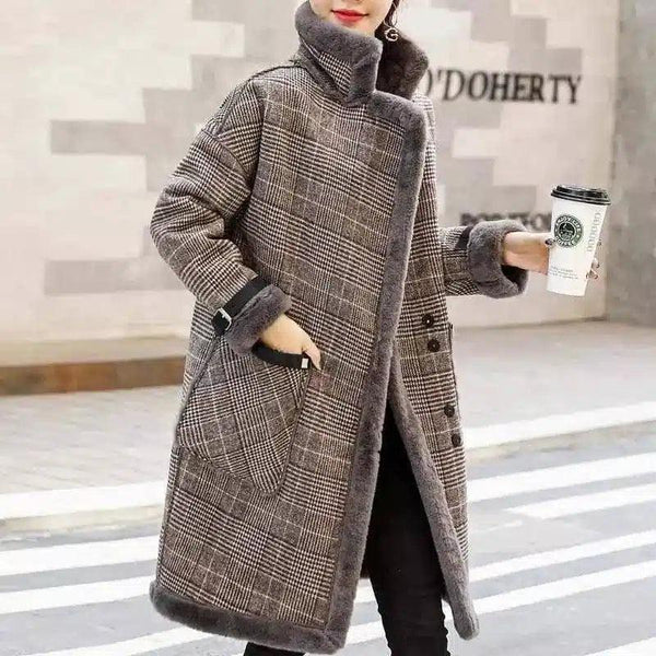 Koreansk temperament pluss fløyel tykk mellomlang ullfrakk